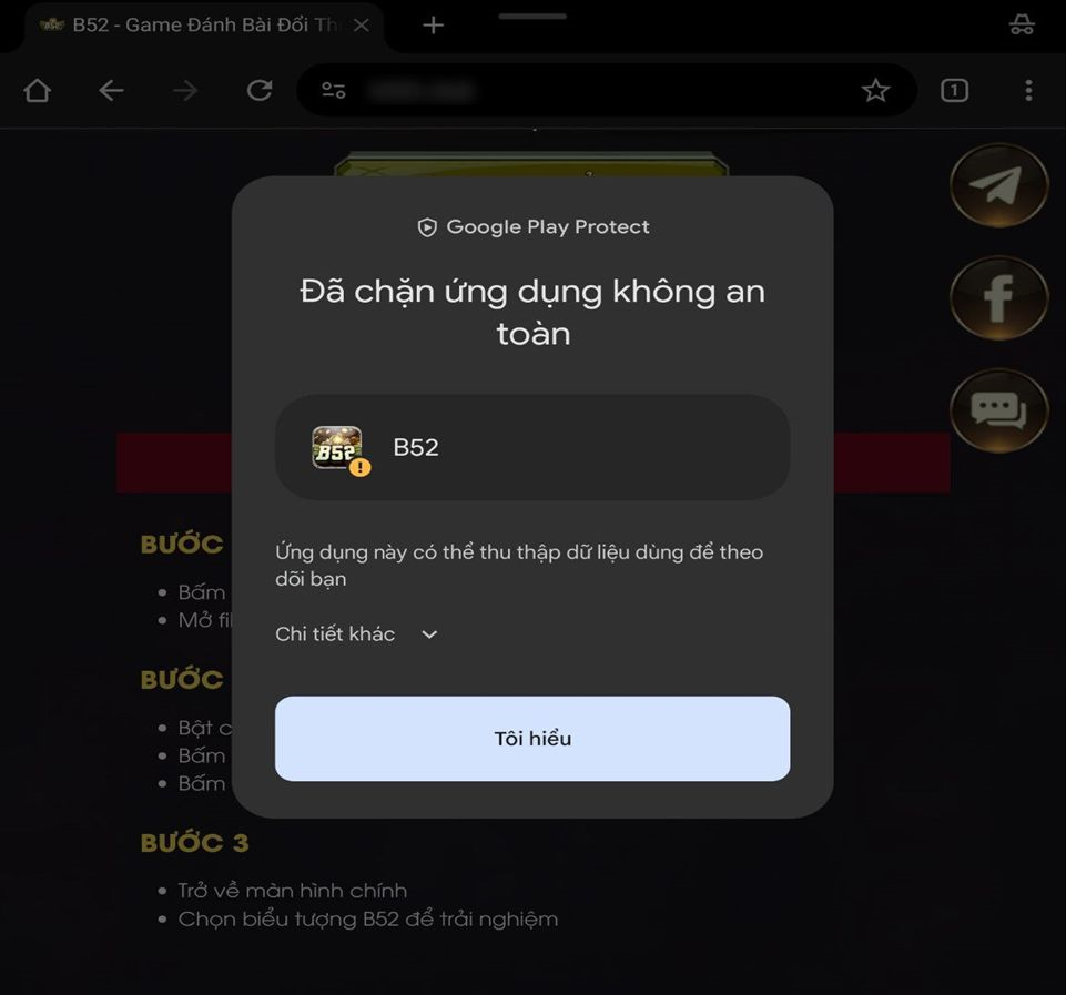 Bước 4: Ứng dụng sẽ yêu cầu bạn chấp nhận thêm 1 bước nữa vì lý do bảo mật cho người dùng bạn nhấn vào phần TÔI HIỂU